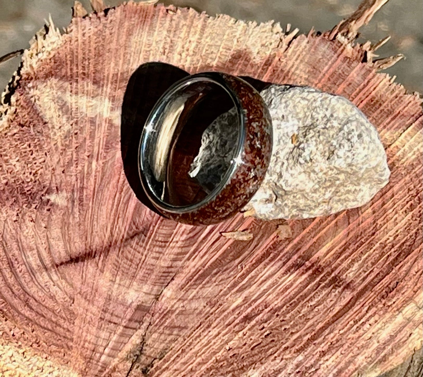 The Workman is crafted with oak, ashes, and coffee on a durable stainless steel band. Each element tells a story — oak for strength and resilience, ashes for life's impermanence and new beginnings, and coffee for warmth and daily comfort. This ring is more than jewelry — it's a symbol of life, love, and legacy.